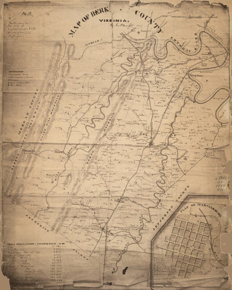 1847 Map of Berkeley County Virginia Fort Frederick Martinsburg Genealogy