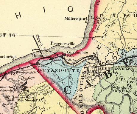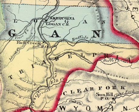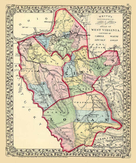 1873 Map of Cabell Wayne Lincoln and Logan County West Virginia