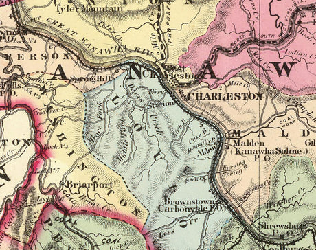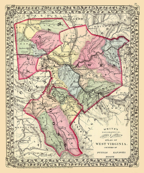 1873 Map of Putnam Kanawha and Boone County West Virginia