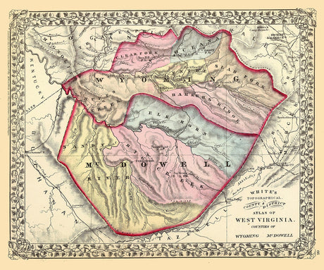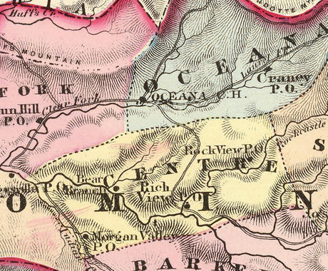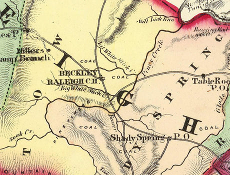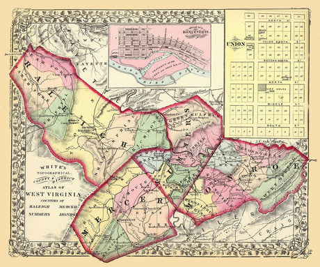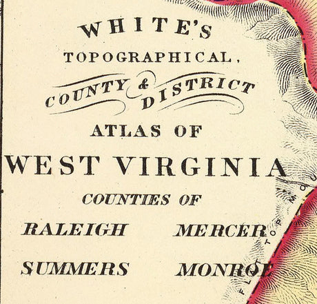 1873 Map of Raleigh Mercer Summers and Monroe County West Virginia