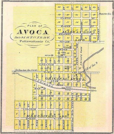 1875 Map of Avoca Pottawattamie County Iowa