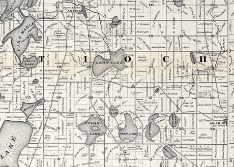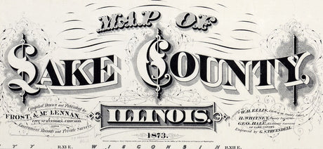 1873 Farm Line Map of Lake County Illinois Waukegan