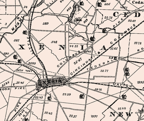1858 Farm Line Map of Miami County Ohio Piqua Troy
