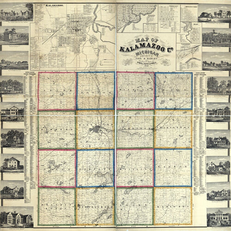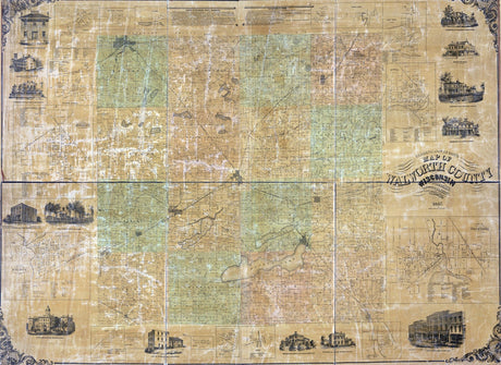 1850 Farm Line Map of Fulton County Ohio Delta Wauseon