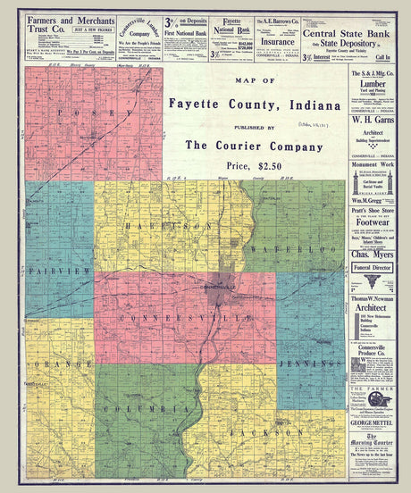 1917 Farm Line Map of Fayette County Indiana