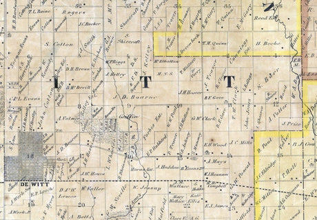 1865 Farm Line Map of Clinton County Iowa Dewitt Lyons