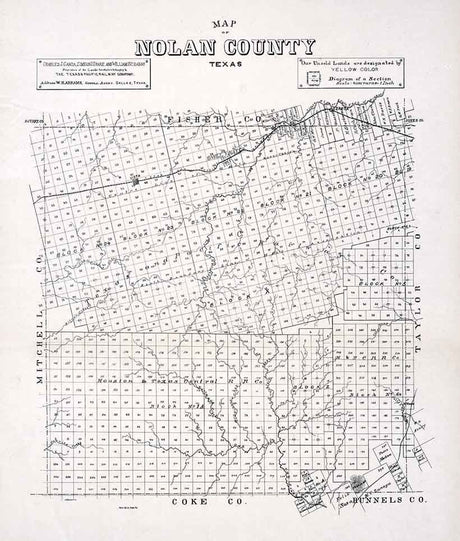 1890 Farm Line Map of Nolan County Texas