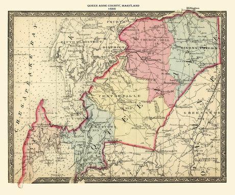 1866 Map of Queen Anne County Maryland