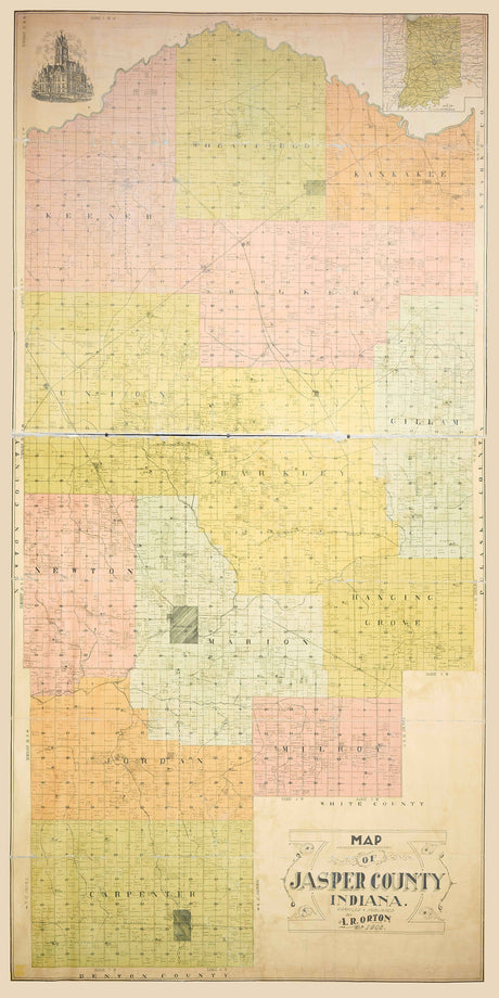 1902 Farm Line Map of Jasper County Indiana