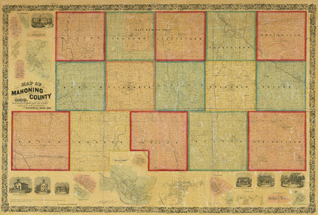 1860 Farm Line Map of Mahoning County Ohio Youngstown