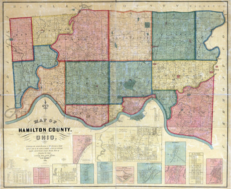 1856 Farm Line Map of Hamilton County Ohio Farm Names