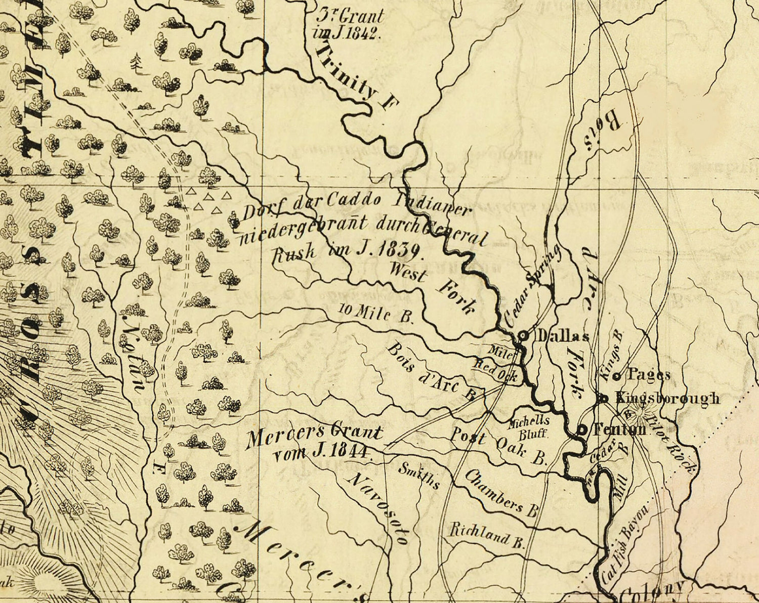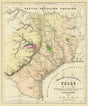 This very early map of Texas shows Geographical Features including topography, water ways, and terrain types. It also shows towns, roads, and place names.