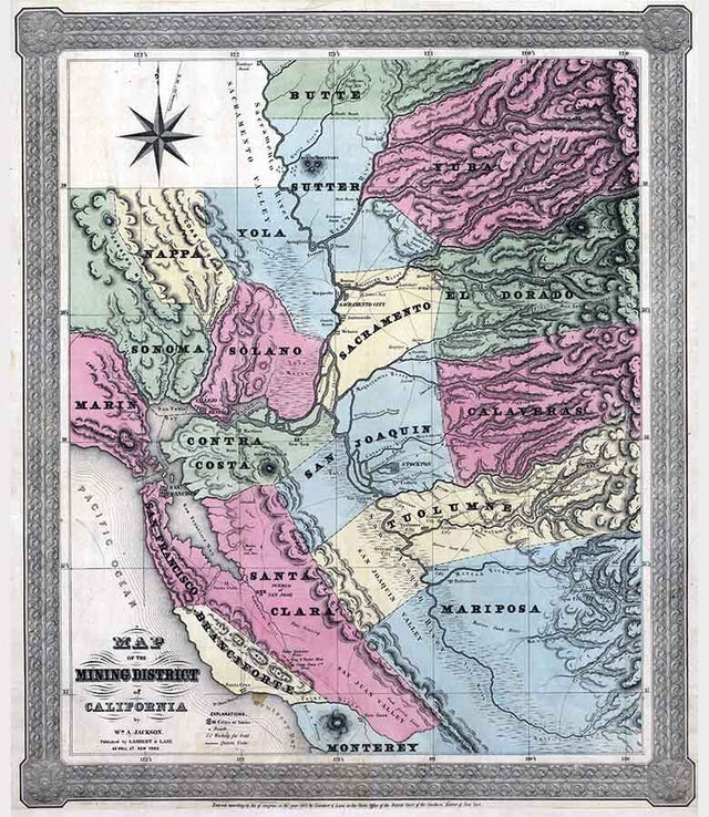 1851 Map of the Mining District of California - 16"x20"Matte is backordered and will ship as soon as it is back in stock.