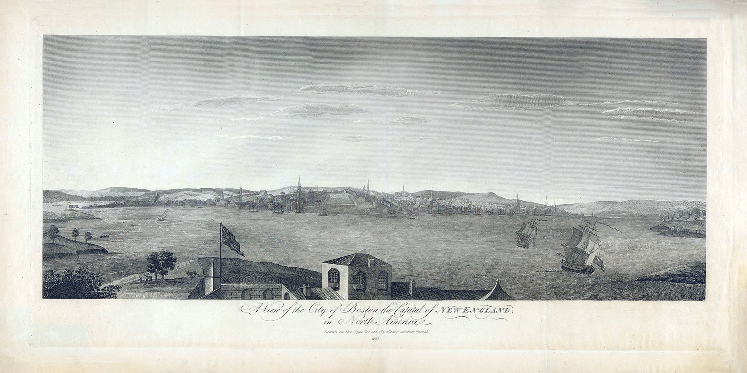 1757 Panoramic Map of Boston - 12" x 24" Matte is backordered and will ship as soon as it is back in stock.