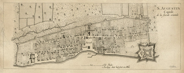 This map shows historic places of interest within the town of Saint Augustine in 1778. A lot of great town detail showing streets, buildings, and more!