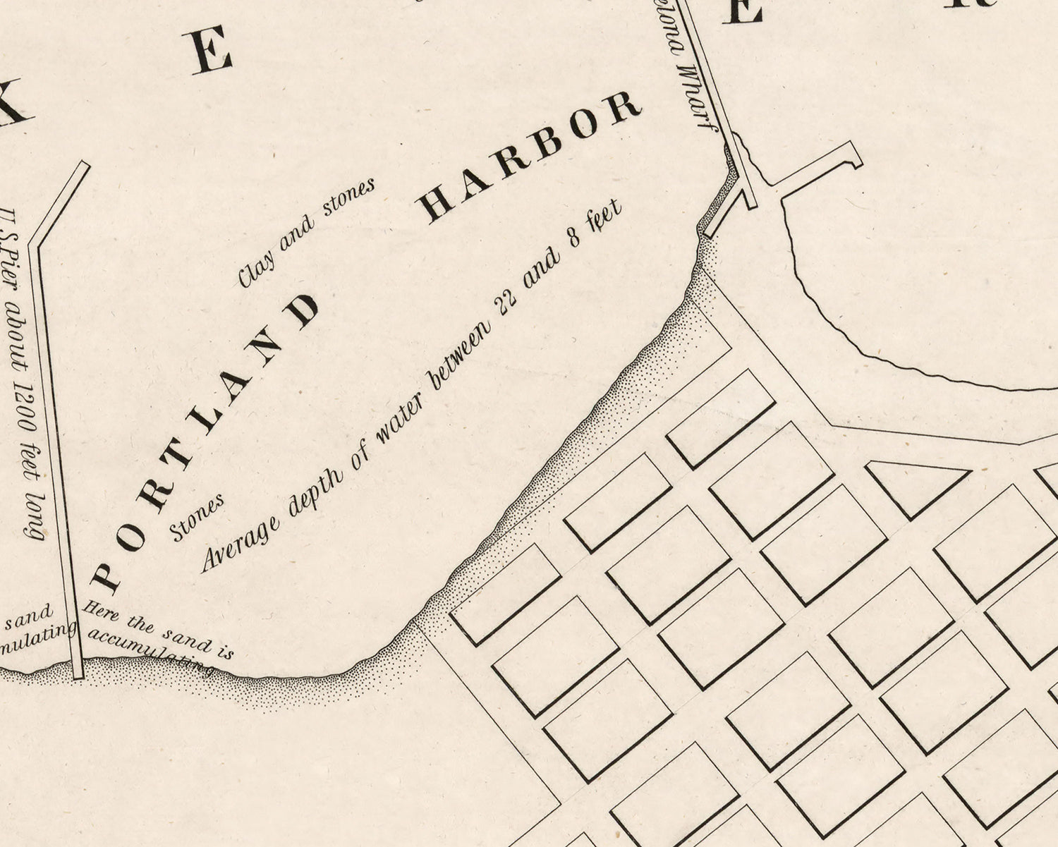 This map shows Portland Harbor or Barcelona along Lake Erie. It also shows piers and roads.