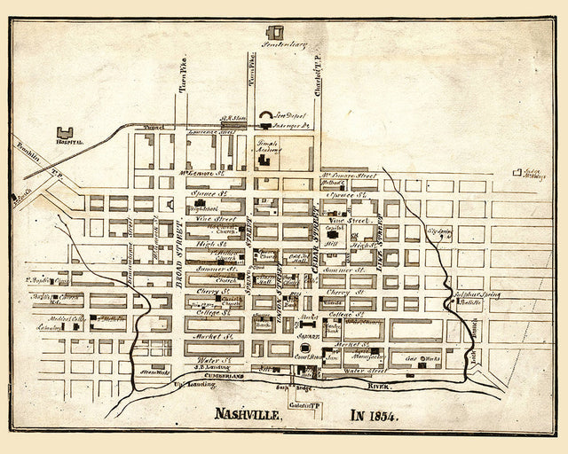 1854 Map of Nashville Tennessee