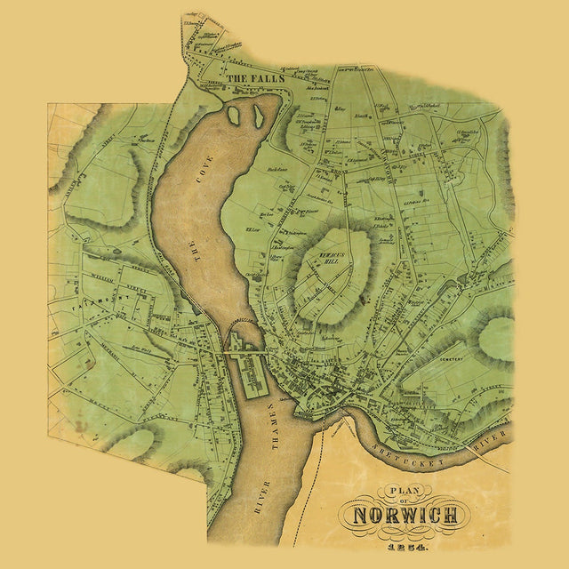 1854 Map of Norwich New London County Connecticut - 16" x 16" Matte is backordered and will ship as soon as it is back in stock.