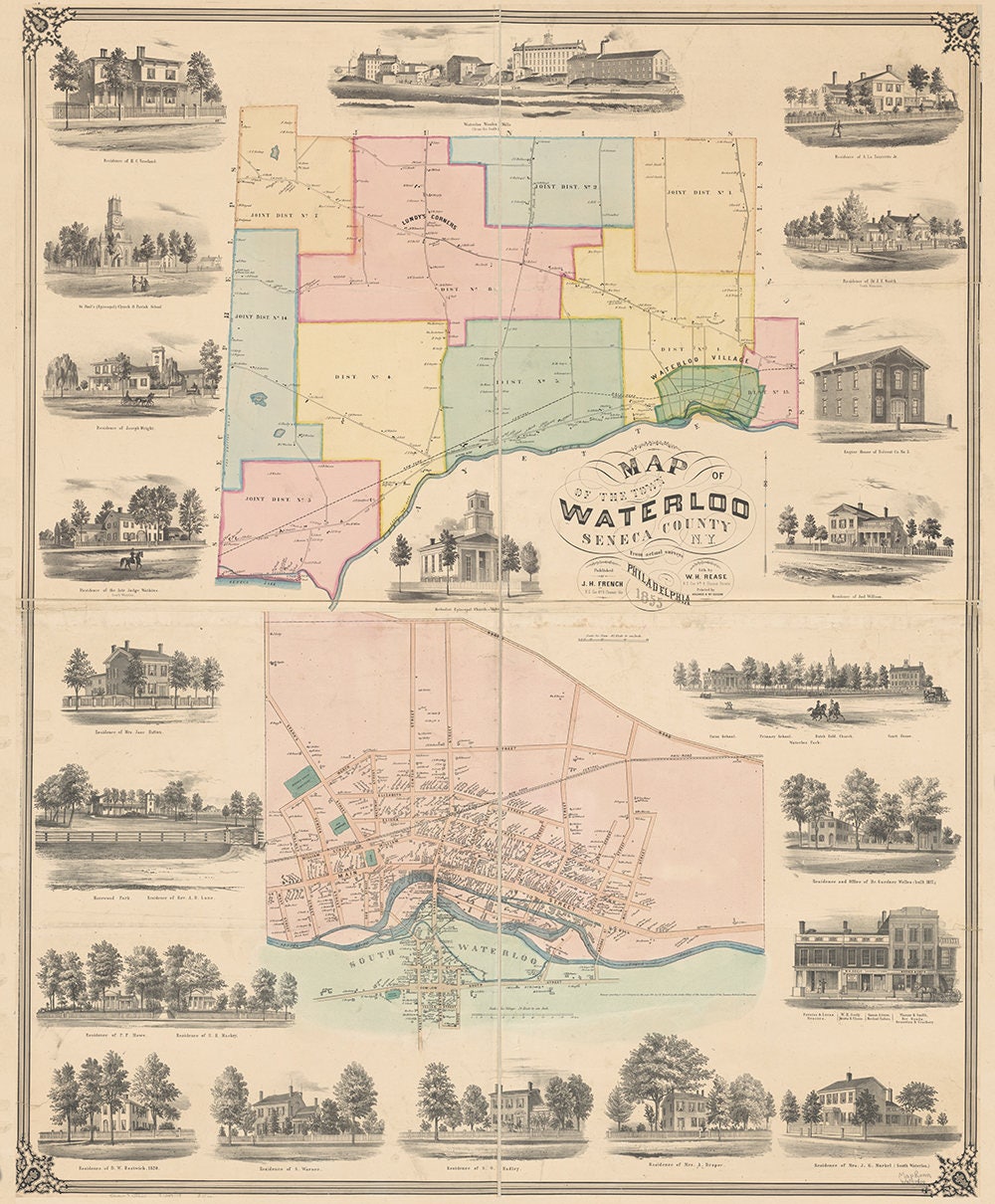1855 Map of Waterloo Seneca County New York - 20"x24" Matte is backordered and will ship as soon as it is back in stock.