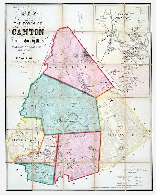 1855 Town Map of Canton Norfolk County Massachusetts - 16" x 20" Matte is backordered and will ship as soon as it is back in stock.