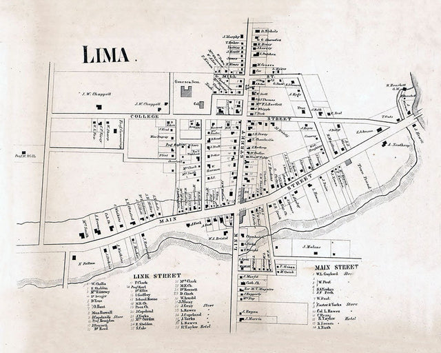 1858 Town Map of Lima Livingston County New York - 10"x12" Matte is backordered and will ship as soon as it is back in stock.