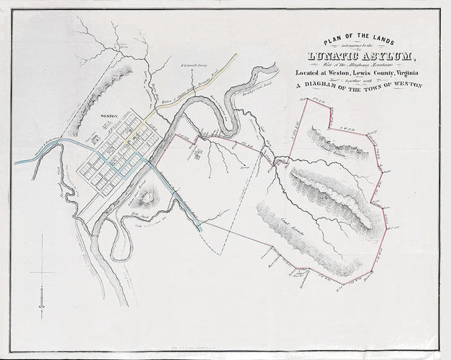 1863 Map Plan of Weston Lunatic Asylum Lewis County West Virginia - Heavy Weight Matte is backordered and will ship as soon as it is back in stock.