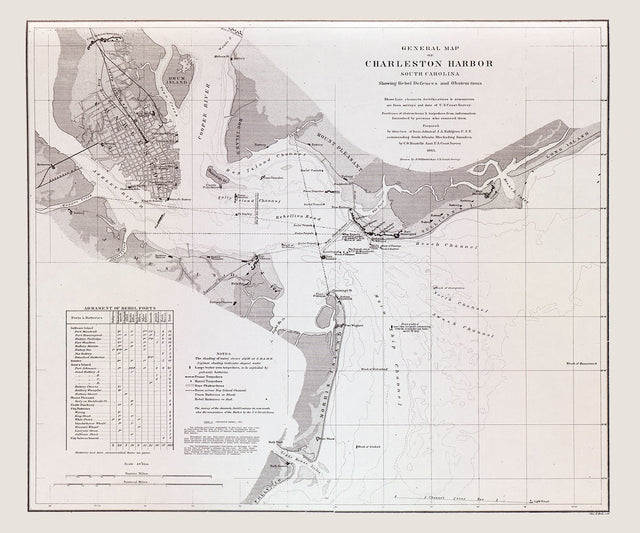 1865 Map of Charleston Harbor South Carolina - 20" x 24" Matte is backordered and will ship as soon as it is back in stock.