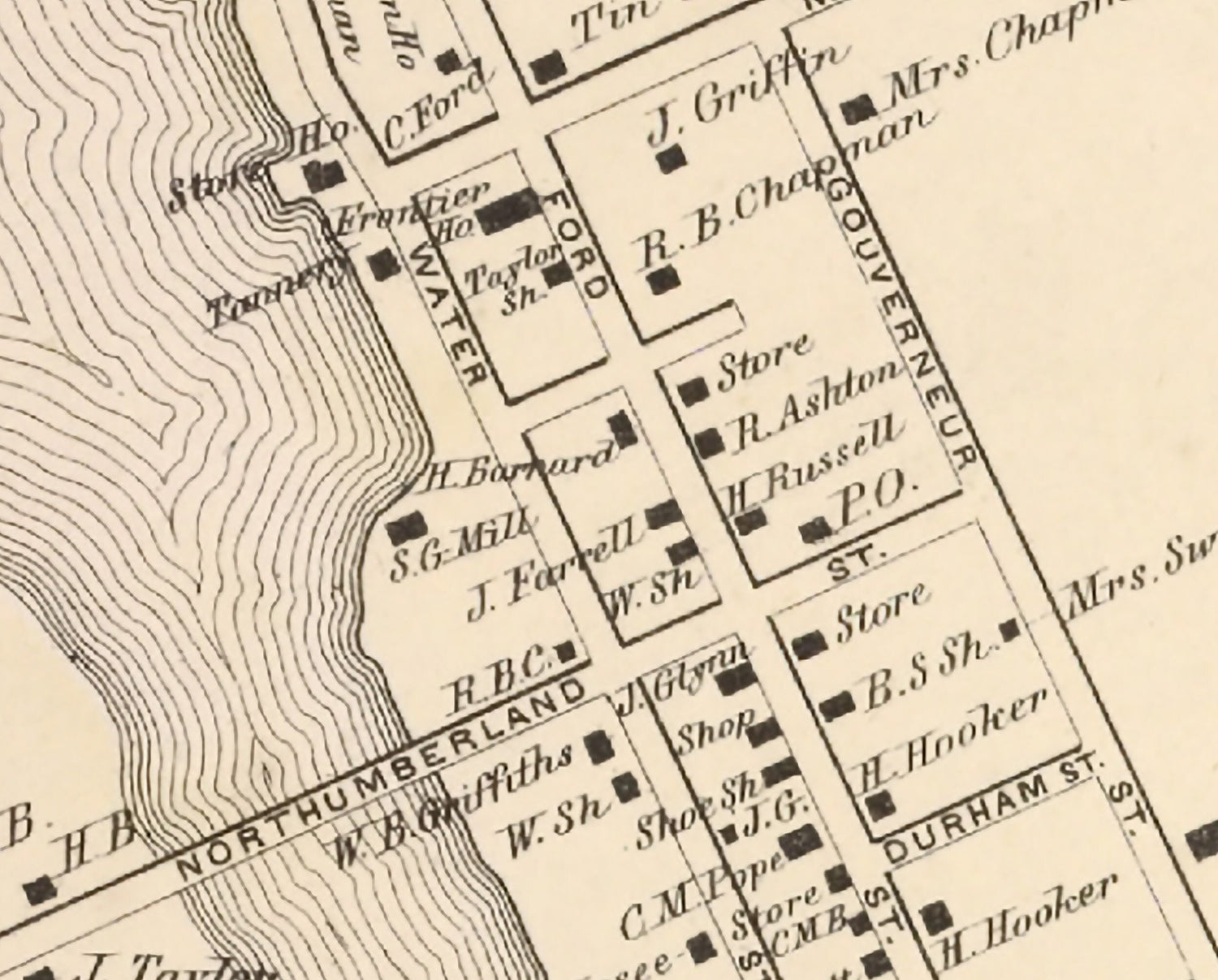 This map shows roads, road names, landowner names, buildings, historic places, and more.
