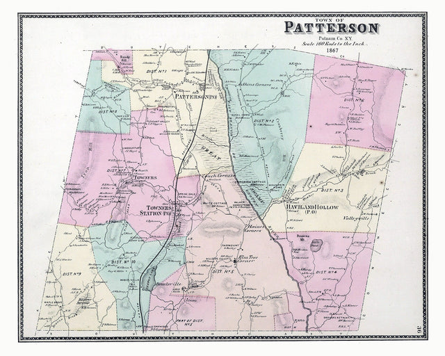 1867 Map of Patterson Putnam County New York - 16" x 20" Matte is backordered and will ship as soon as it is back in stock.