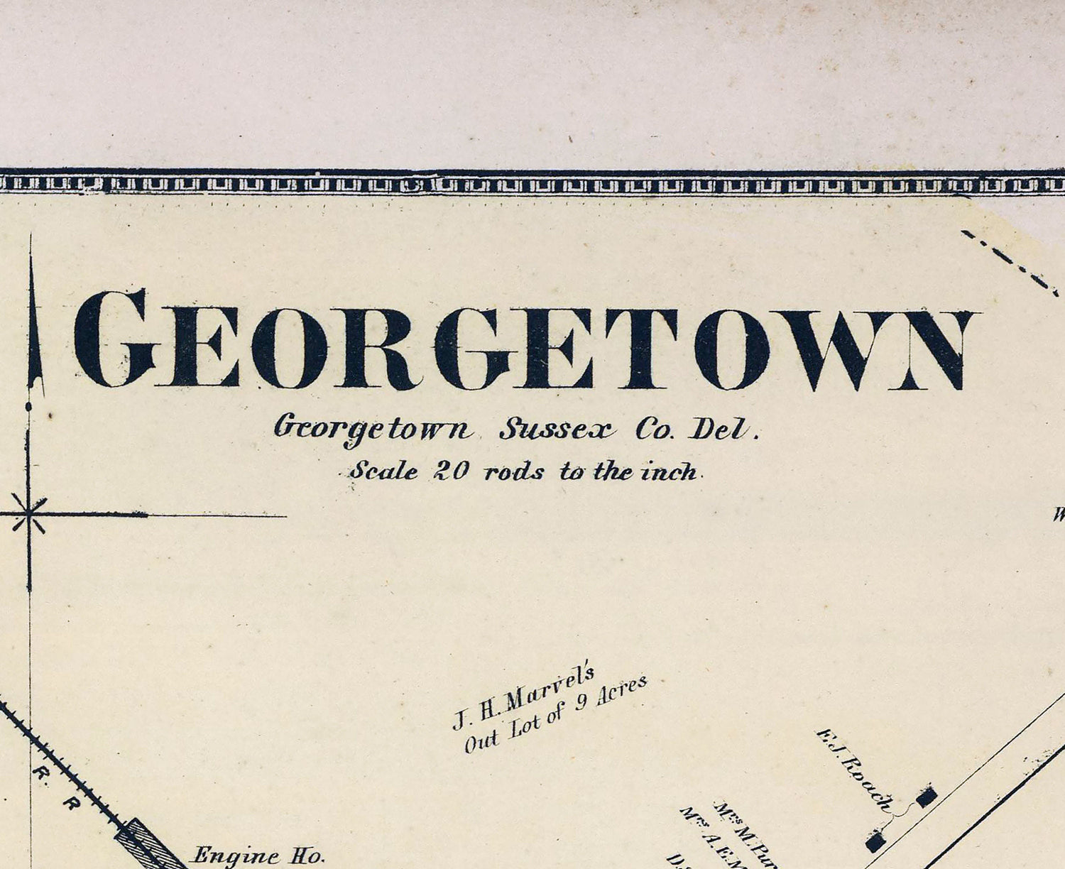 1868 Map of Georgetown Sussex County Delaware - 16" x 16" Matte is backordered and will ship as soon as it is back in stock.