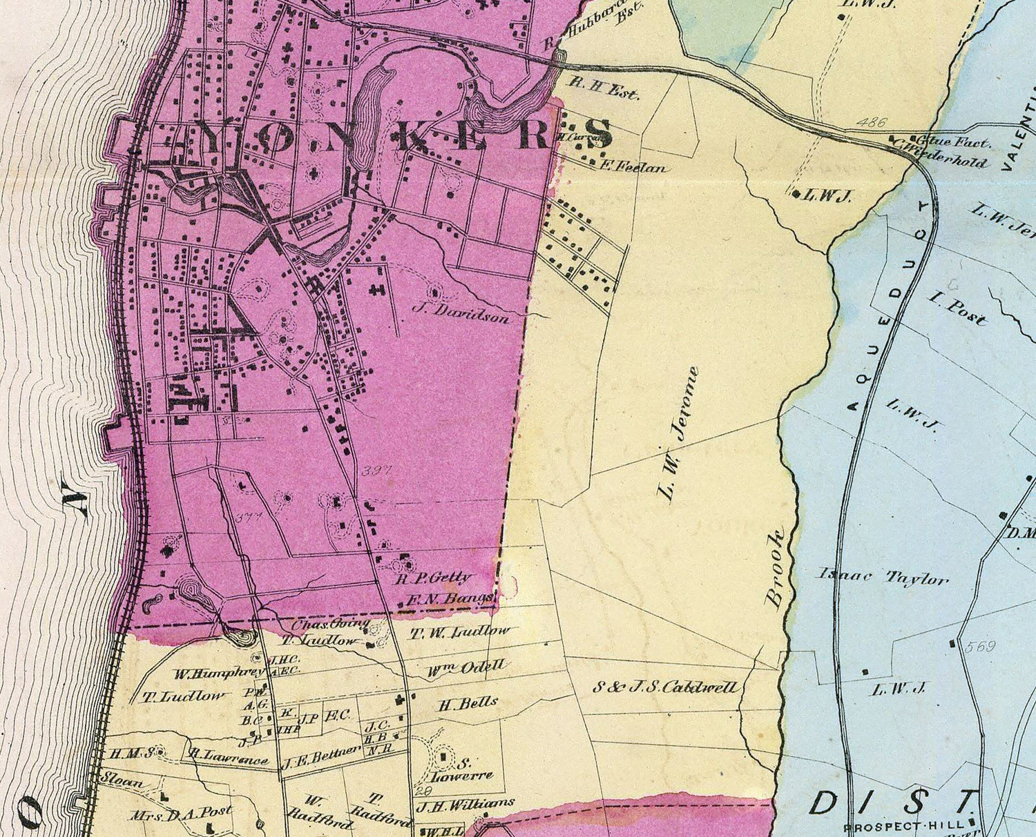 1868 Map of Yonkers Westchester County New York - 20" x 30" Matte is backordered and will ship as soon as it is back in stock.