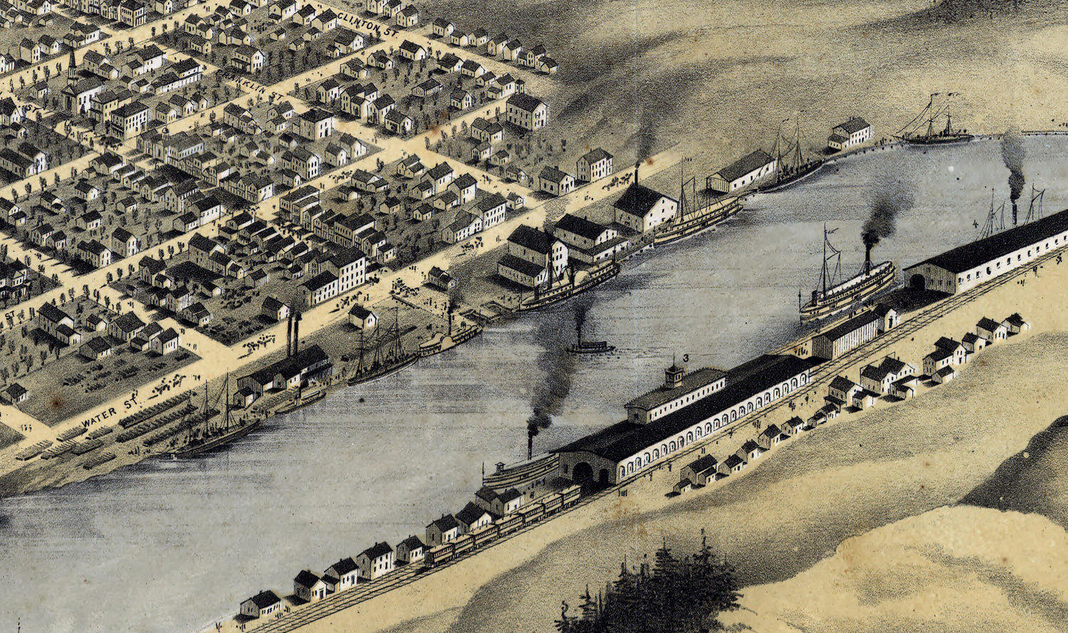 1868 Panoramic Map of Grand Haven Ottawa County Michigan