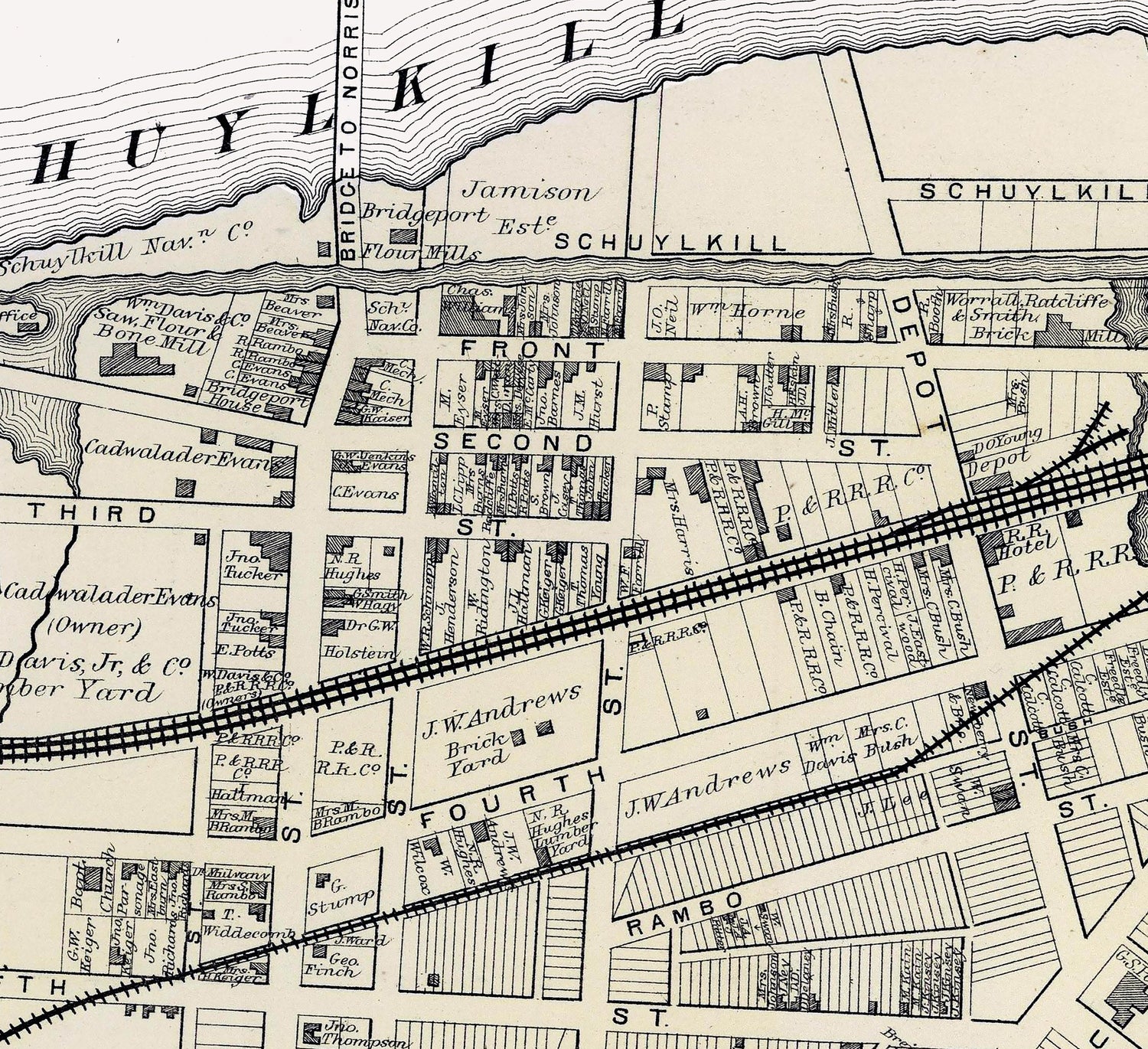 1871 Map of Bridgeport Montgomery County Pennsylvania