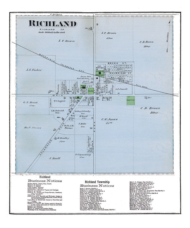 1873 Town Map of Richland Kalamazoo County Michigan - 16" x 20" Matte is backordered and will ship as soon as it is back in stock.