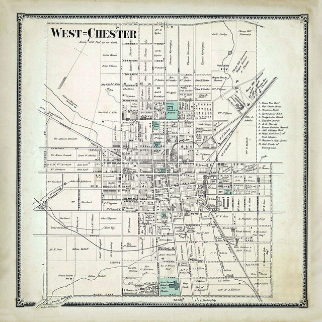 1873 Town Map of West Chester Chester County Pennsylvania - 20" x 20" Matte is backordered and will ship as soon as it is back in stock.