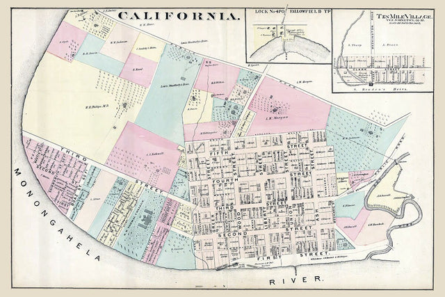 1876 Map of California Washington County PA Ten Mile Village - 16" x 24" Matte is backordered and will ship as soon as it is back in stock.