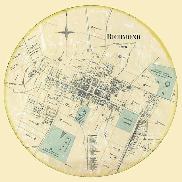 This map shows historical places, building locations, family names, boundary lines, roads, and more!
