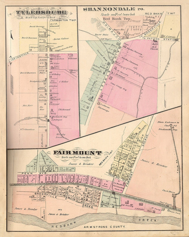 1877 Map of Fairmont Shannondale & Tylersburg Clarion County Pa