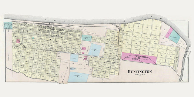 1877 Town Map of Huntington Cabell County West Virginia