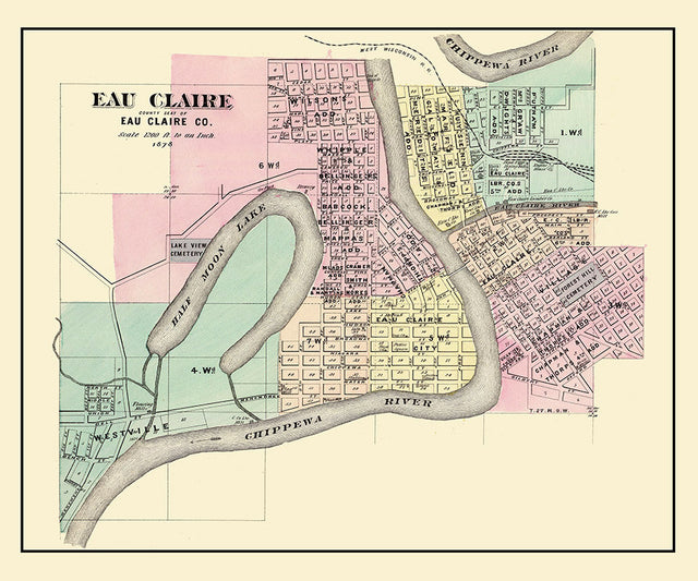 1878 Map of Eau Claire Wisconsin - 16" x 20" Matte is backordered and will ship as soon as it is back in stock.