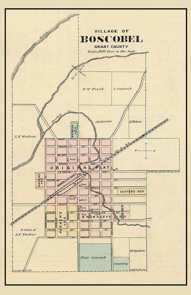 1878 Town Map of Boscobel Grant County Wisconsin - 11" x 17" Matte is backordered and will ship as soon as it is back in stock.