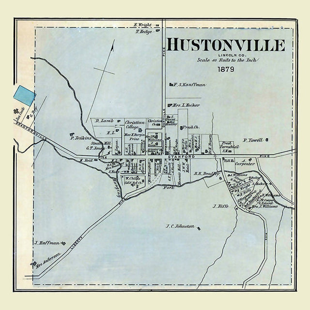 1879 Map of Hustonville Lincoln County Kentucky - 10" x 10" Matte is backordered and will ship as soon as it is back in stock.