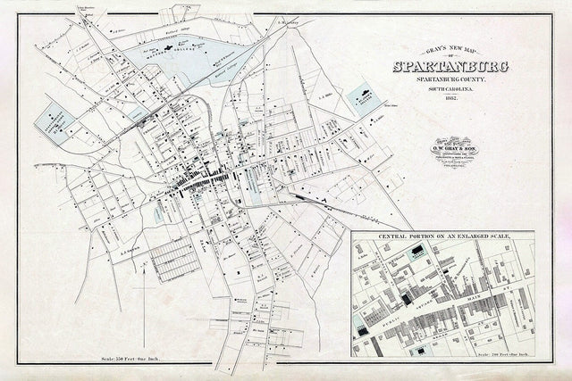 1882 Map of Spartanburg Spartanburg County South Carolina - 16" x 24" Matte is backordered and will ship as soon as it is back in stock.
