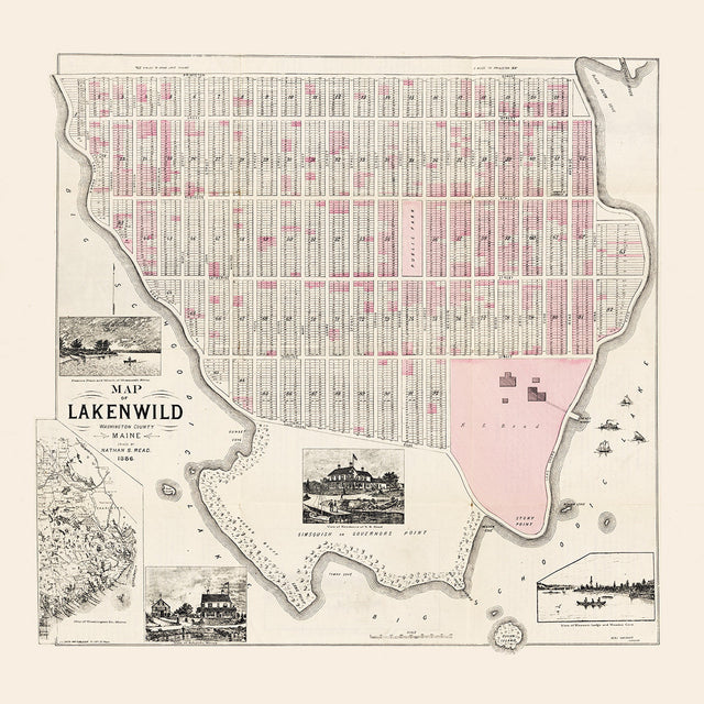 1886 Map of Lakenwild Washington County Maine - 16" x 16" Matte is backordered and will ship as soon as it is back in stock.