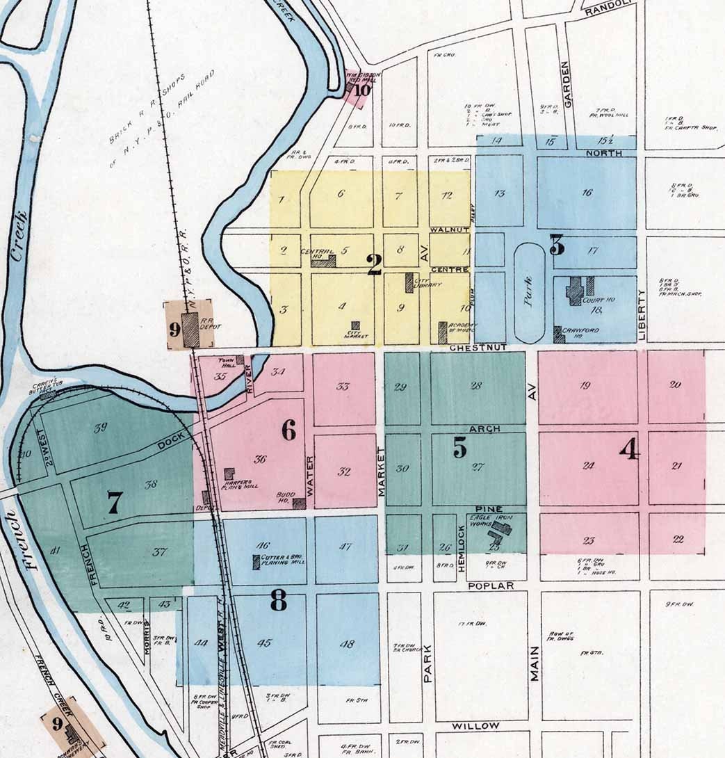 1886 Fire Insurance Sanborn Map of Meadville Crawford County Pennsylvania