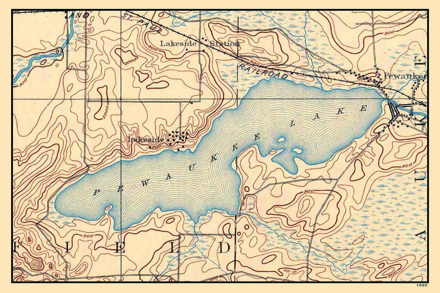 1892 Map of Pewaukee Lake Wisconsin - 16" x 24" Matte is backordered and will ship as soon as it is back in stock.