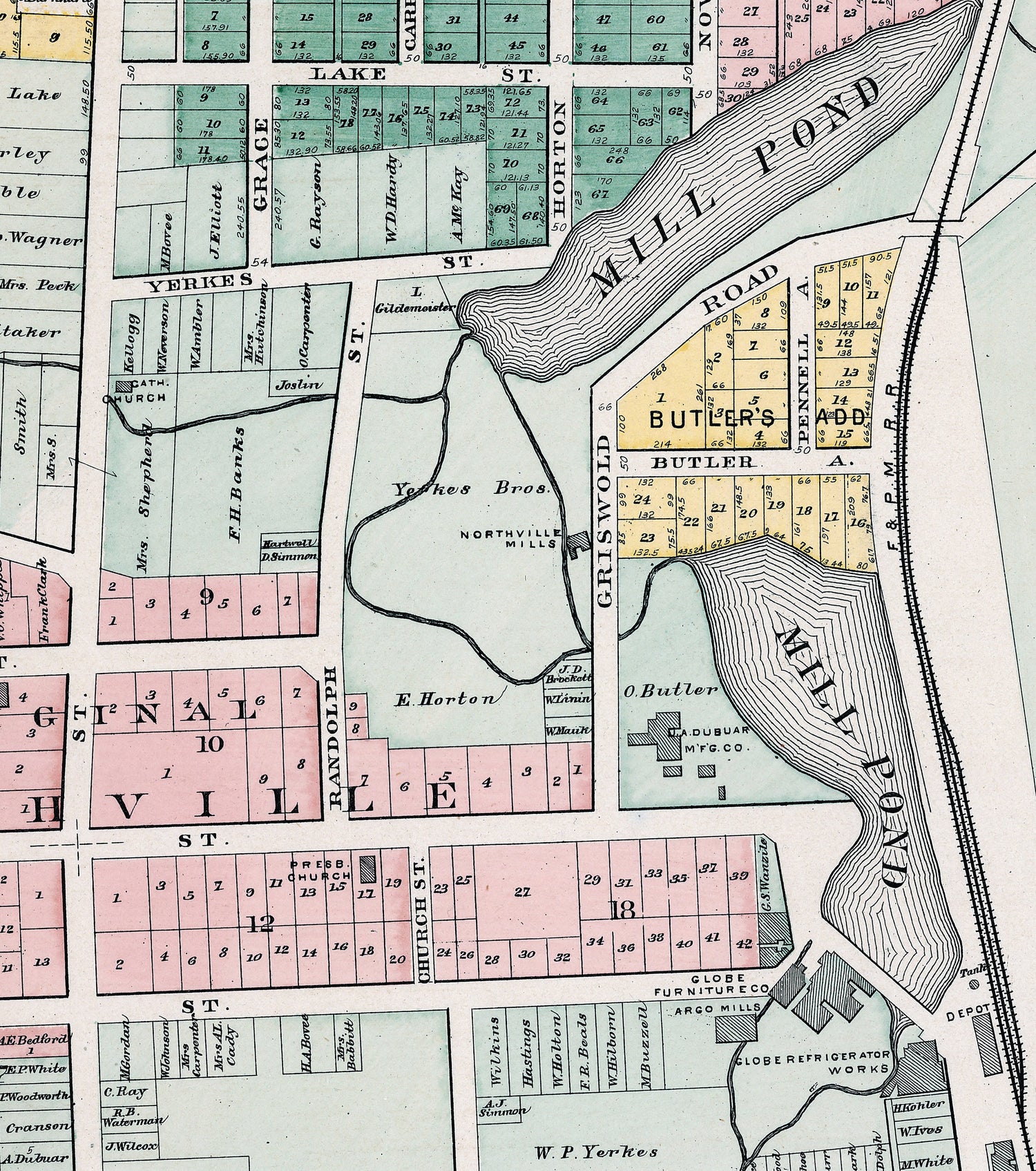 This map shows roads, road names, railroads, boundary lines, land owner names, buildings, place names, and more.