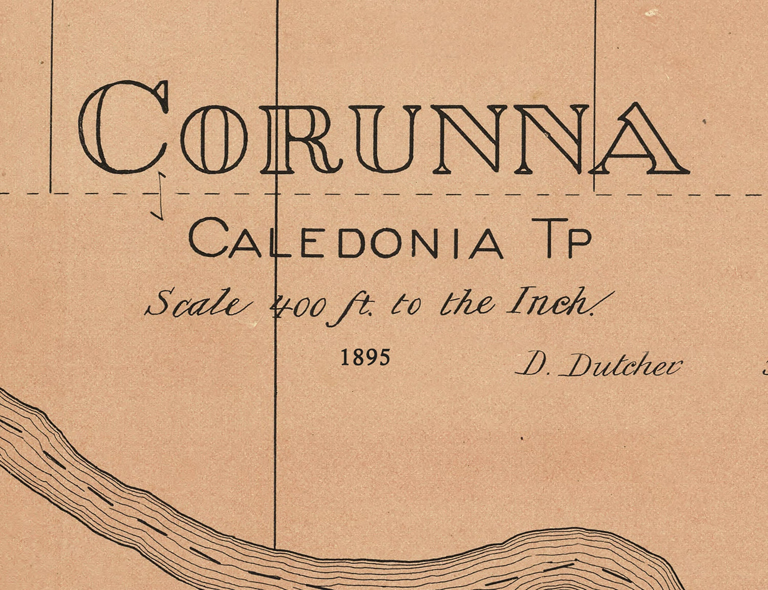 1895 Map of Corunna Shiawassee County Michigan - 16" x 16" Matte is backordered and will ship as soon as it is back in stock.