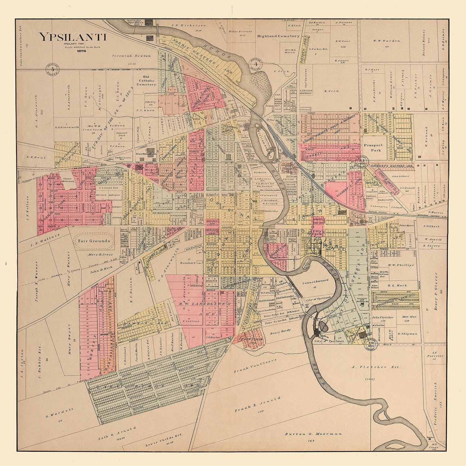 1895 Map of Ypsilanti Washtenaw County Michigan