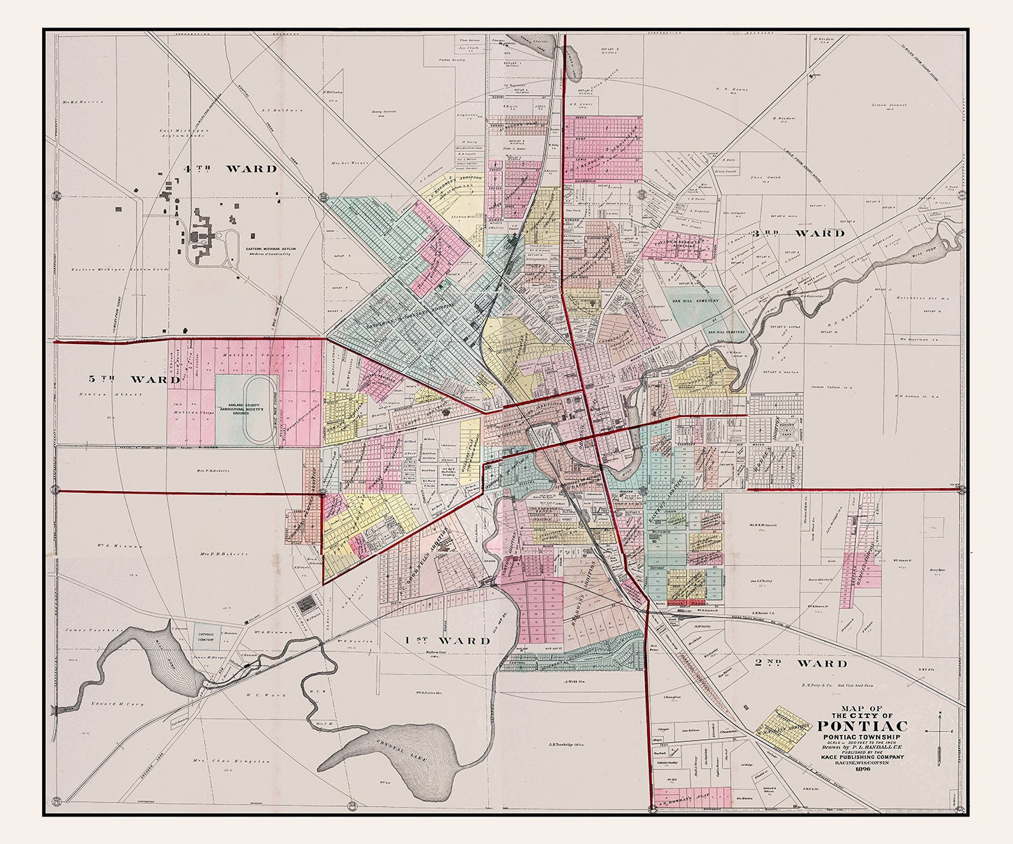 1896 Map of Pontiac Oakland County Michigan - 20" x 24" Matte is backordered and will ship as soon as it is back in stock.